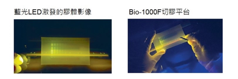 ●適用各大廠牌無毒染劑,最佳靈敏度達 0.002 ng /μl ●提供觀膠/掃膠/切膠三種功能 ●切膠作業區域淨空,提升切膠/取膠工作安全性及方便性 ●體積小巧,功能優異,適合實驗室擁擠的空間 ●直覺式操作,淘汰複雜的參數設定 Bio-1000F使用藍光LED(475nm)激發螢光物質,再透過濾光片觀看螢光膠體,提供對眼睛的防護,也不會傷害皮膚,相較於使用UV燈及EtBr染劑,其對實驗操作者的傷害及對環境的汙染風險,均大幅度降低。