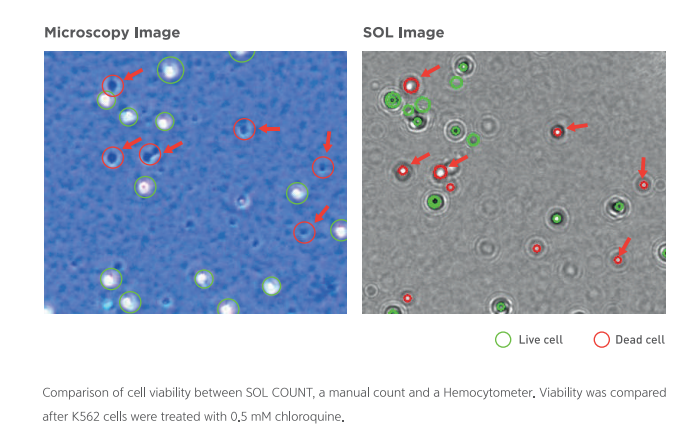SOL COUNT 自動細胞計數器(儀)是一種新技術,可以同時自動對多種細胞類型進行計數(儀)。SOL COUNT 自動細胞計數器儀利用無透鏡 LED 光學元件和 CMOS 傳感技術快速準確地測量細胞、活細胞和死細胞的總數,並輕鬆存儲和傳輸數據。此外,可以同時測量兩種細胞。