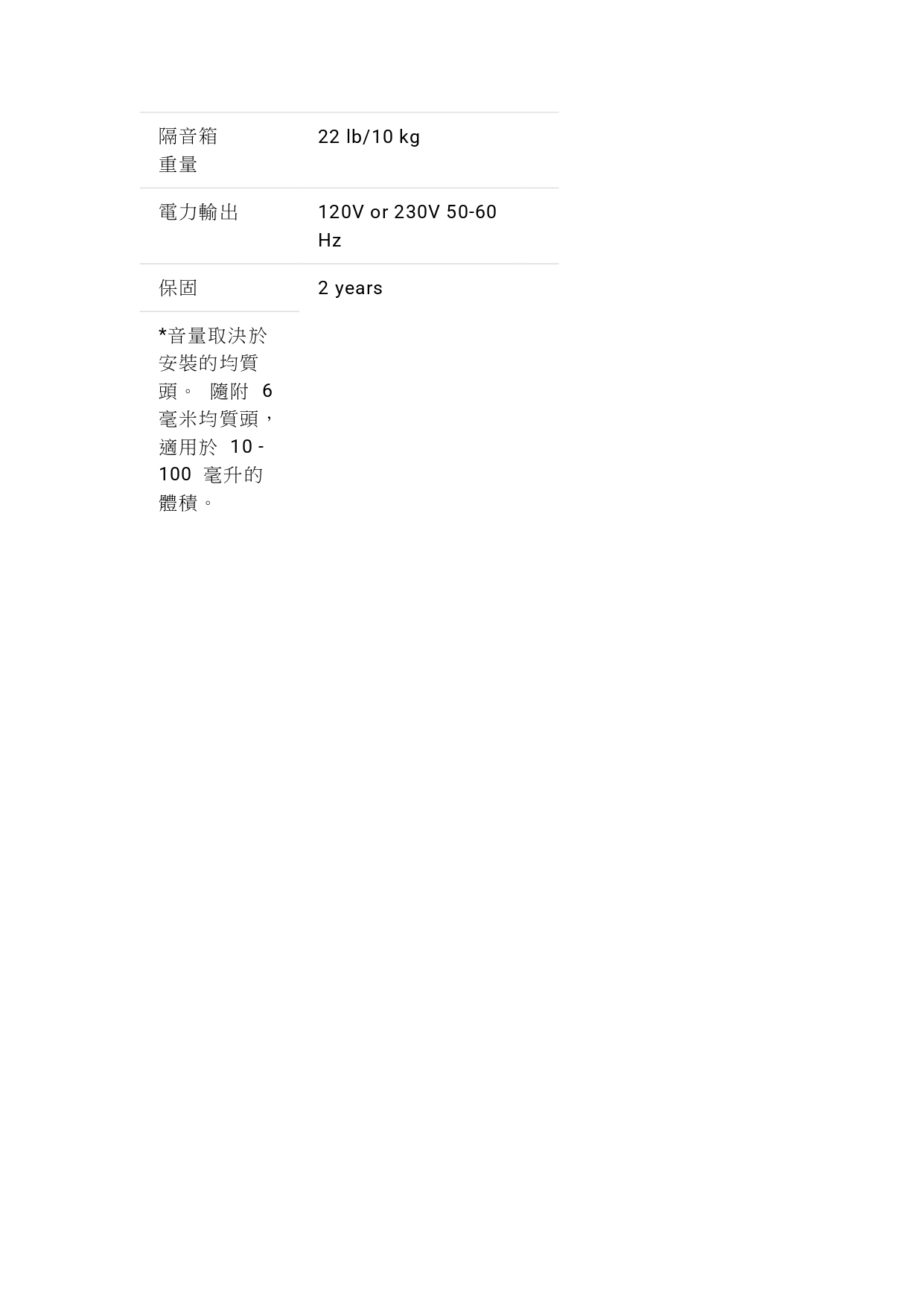 - 隨附 6 毫米均質頭、溫度探頭和隔音罩