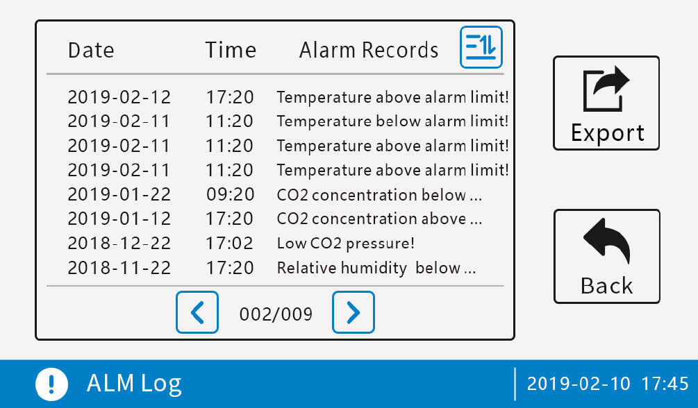 - 具有報警記錄、操作記錄自動存儲功能,可查詢並匯出。