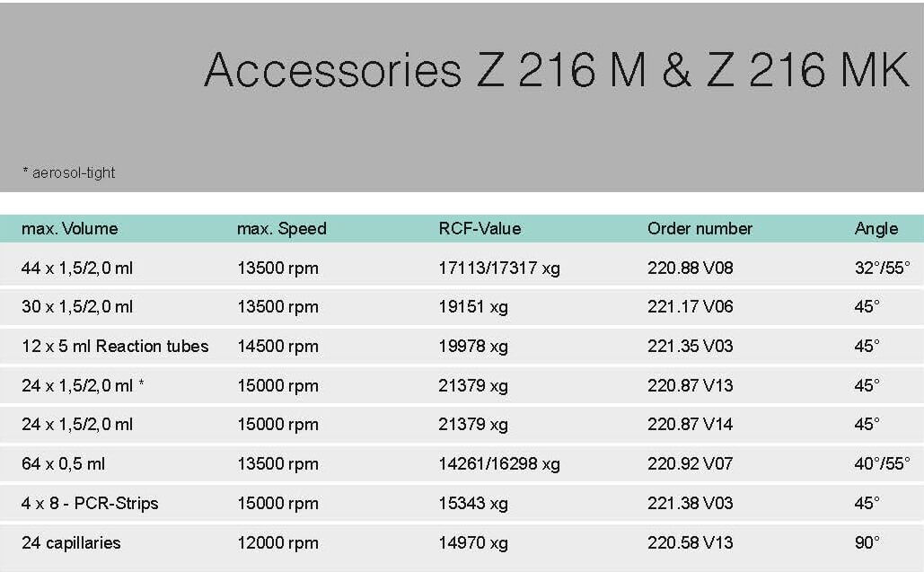 德國HERMLE桌上小型離心機 Z206A最多可配置12x15ml圓底或尖底離心管。另外也提供了多種離心套管可放置更小尺寸離心管。同時也可放置6x50ml圓底或尖底離心管的轉子。